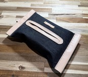 デニム生地とタンニン鞣しレザーで仕上げた