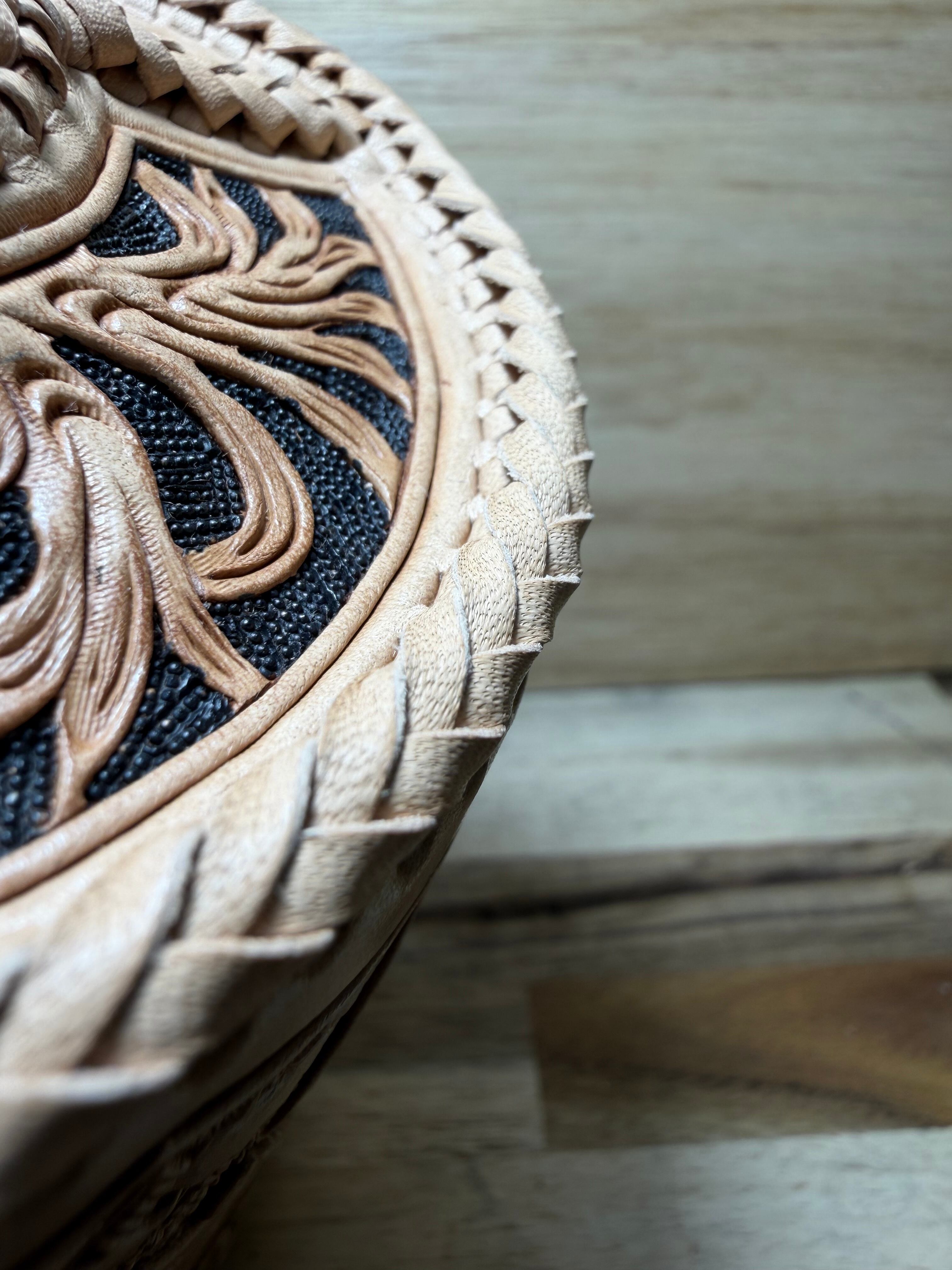 レザーカービングを施した
